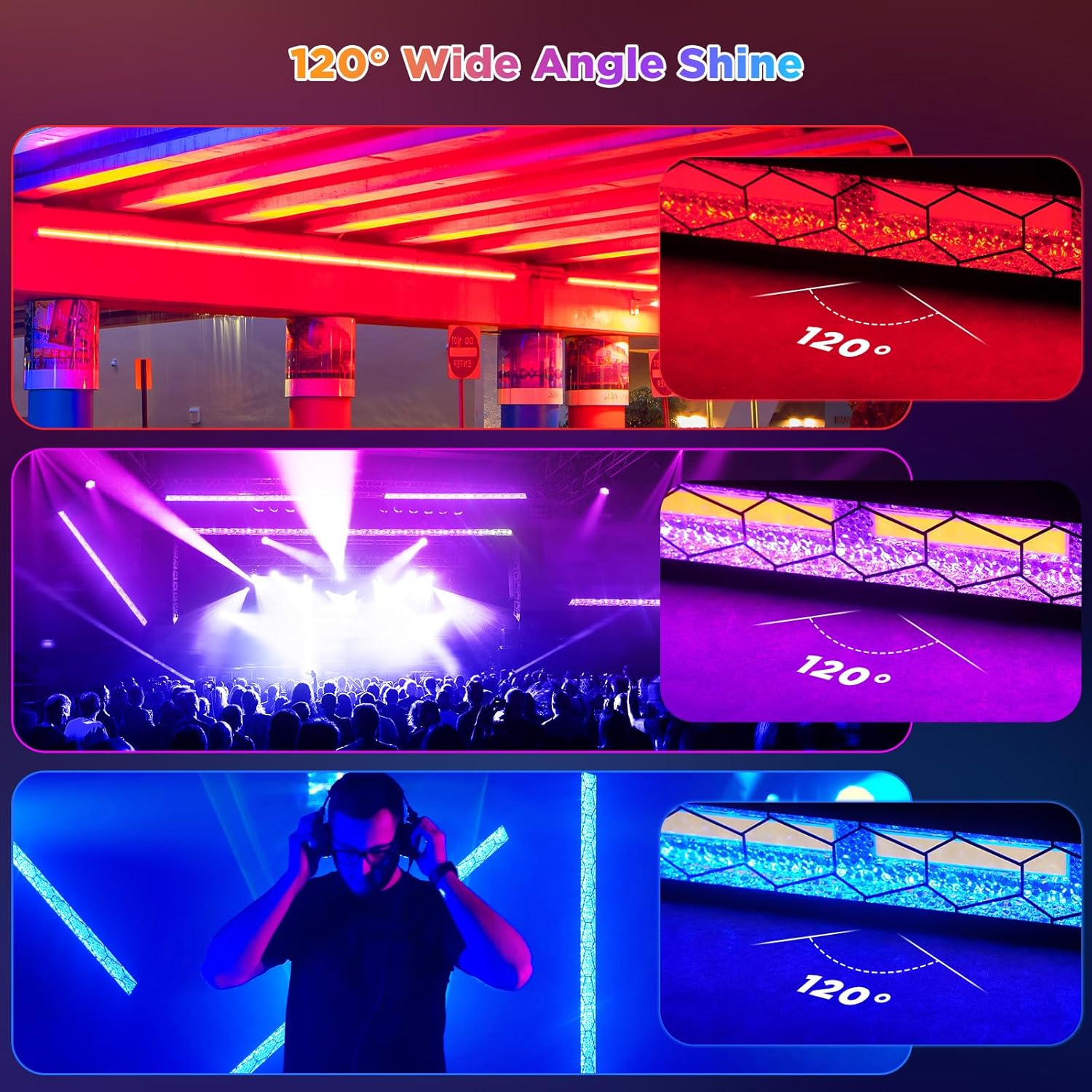Al conectarse a un controlador, las barras LED pueden hacerse eco de la música e incluso ajustar el ambiente en tiempo real en función del público. Canales de control: 8/13CH