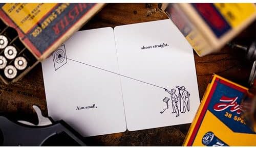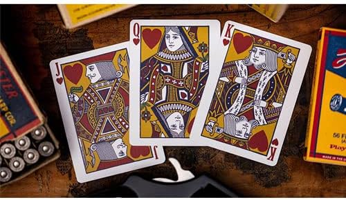The Truett 38 Special luxury playing card deck is inspired by the vintage ammo boxes that were included with the pistol handed down to Jackson from his grandfather George Truett. Jackson’s Grandfather served in WW2, and will always be remembered for his kindness, gentleness and love for his family and God. The Standard edition of the Truett 38 Special, features rich, bold colors, resembling the original ammo boxes accompanying the gun handed down to Jackson by his grandfather George Truett.Printed by the United States Playing card company, this deck is both beautiful and represents the highest quality of luxury playing cards. With this deck, Jackson was drawn to the bold, rich colors, of the vintage ammo box package designs. These bold colors are translated across the tuck case along with the vibrant coloring of the court cards. The Ace of Spades features the Kings Wild motto: «Aim Small, Shoot Straight». The diptych joker is a recreation of the shooting manual that was included with the pistol instructions.